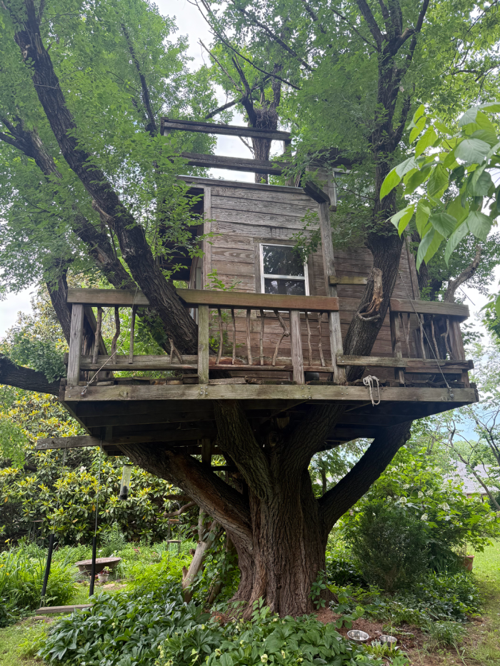 And our tree house was a platform of boards somebody’s dad had put in the biggest tree in the neighborhood.