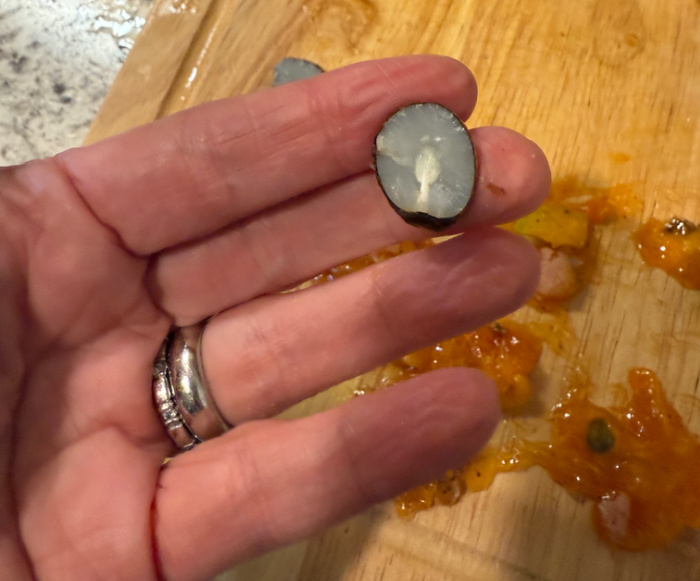 - Cutting open the seed pod involves a sharp knife and slippery fruit innards, so proceed very carefully!