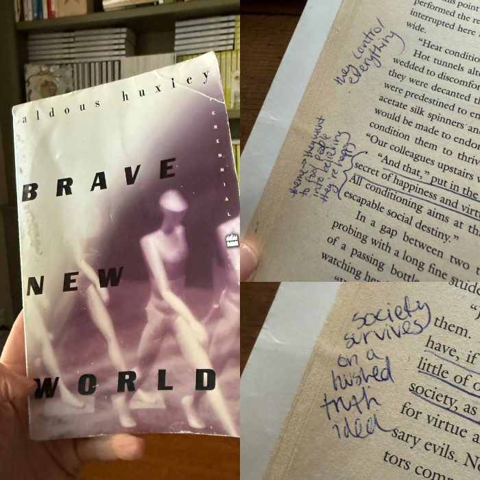 Anyway, I’m not sure how I missed reading Brave New World in high school or college, but I did, and over the past two weeks, I’ve been reading it. I finished it last night and will admit it is a mighty chilling, shocking, and upsetting story, which is probably why it has been living on the banned book list and why we should read it.