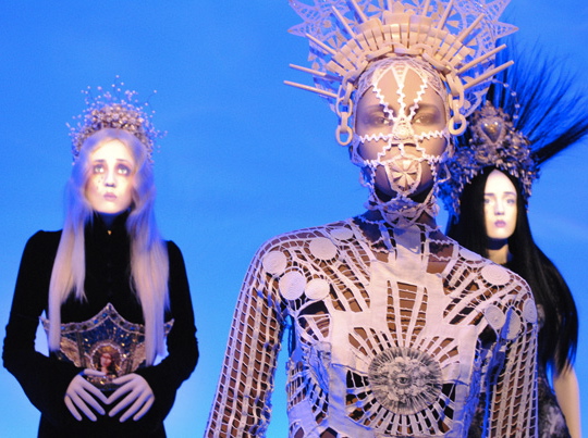 Yesterday, my mother and I set off to soak up a bit of Dallas culture. Her friend, Carlos, a tour guide at the Dallas Museum of Art (DMA), invited us to attend the current exhibit – The Fashion World of Jean Paul Gaultier, From the Sidewalk to the Catwalk. The exhibit had received rave reviews and was ending soon, so we quickly jumped at the chance to attend. And, with our own tour guide! Prior to this invitation, I really had no desire to see this. I didn’t know much about Gaultier other than he designed those pointy conical boob corset rigs for Madonna during her 1990 Blonde Ambition World Tour.