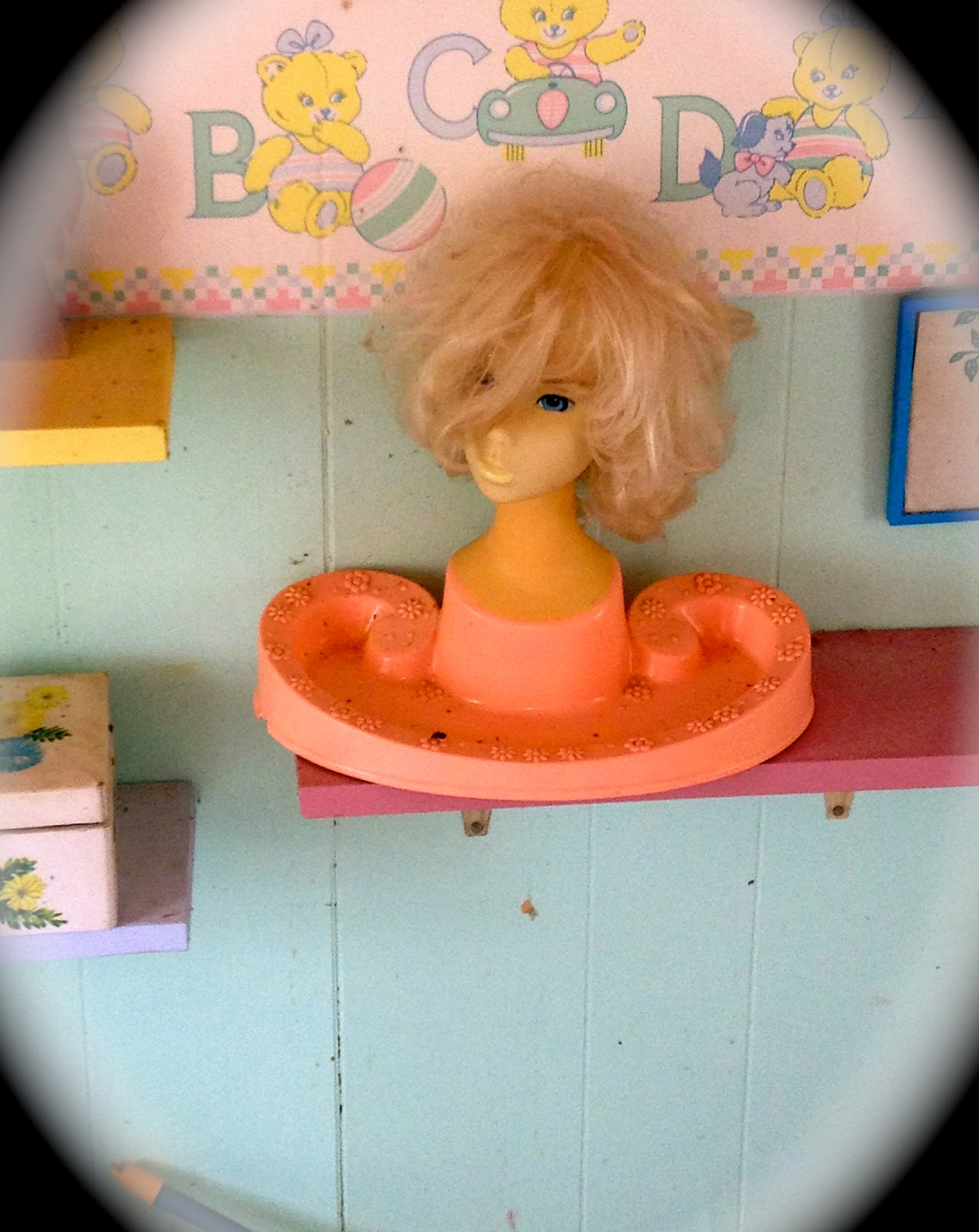 After she calmed down she remembered “severed heads aren’t pink. With sparkly earrings. And golden blond tresses. And shimmery rose pink lip gloss.” After another Ambien evening, she awoke the following morning to discover someone “retrieved and unpacked the Barbie head” and “styled her with a big back-combed updo, black eyeliner, off-white lipstick and a Pucci-style head wrap”.
